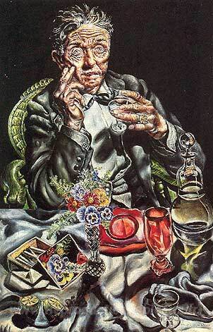 Nous vous proposons une reproduction artisanale sur toile du célèbre tableau 'Auto-portrait buvant' de Ivan Albright, provenant du Musée de la Reproduction.