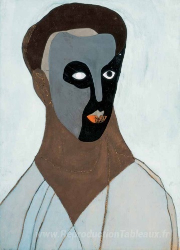 Nous vous proposons une reproduction artisanale sur toile du célèbre tableau 'Autoportrait dans un masque' de Vajda Lajos, provenant du Musée de la Reproduction.