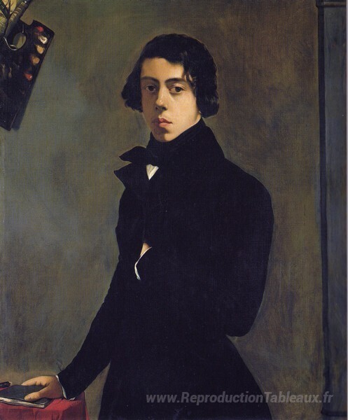 Nous vous proposons une reproduction artisanale sur toile du célèbre tableau 'Autoportrait dans un redingote' de Theodore Chasseriau, provenant du Musée de la Reproduction.