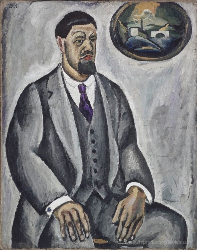 Nous vous proposons une reproduction artisanale sur toile du célèbre tableau 'Autoportrait en gris' de Pyotr Konchalovsky, provenant du Musée de la Reproduction.