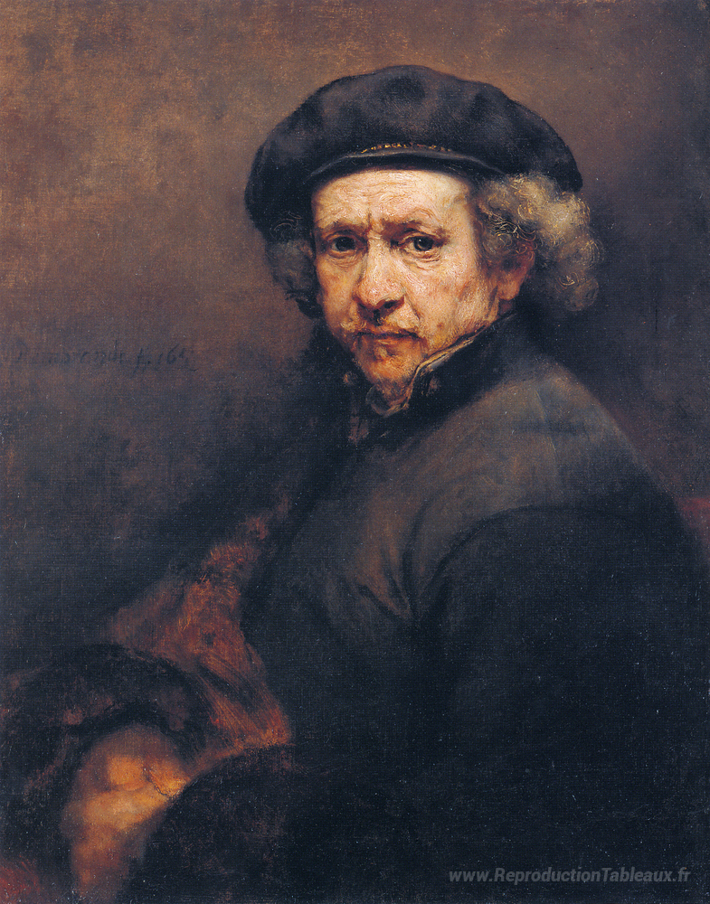 Nous vous proposons une reproduction artisanale sur toile du célèbre tableau 'Autoportrait' de Rembrandt, provenant du Musée de la Reproduction.