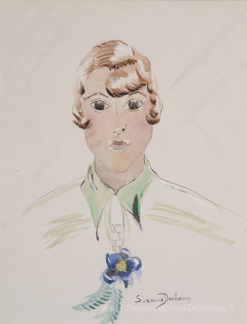 Nous vous proposons une reproduction artisanale sur toile du célèbre tableau 'Autoportrait' de Suzanne Duchamp, provenant du Musée de la Reproduction.