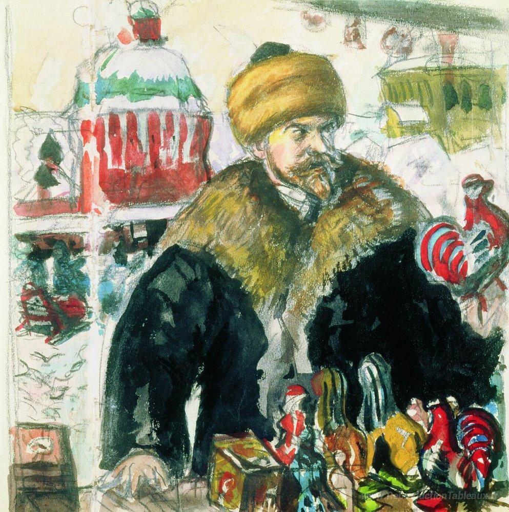 Nous vous proposons une reproduction artisanale sur toile du célèbre tableau 'Autoportrait' de Boris Kustodiev, provenant du Musée de la Reproduction.