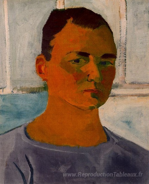 Nous vous proposons une reproduction artisanale sur toile du célèbre tableau 'Autoportrait' de Elmer Bischoff, provenant du Musée de la Reproduction.