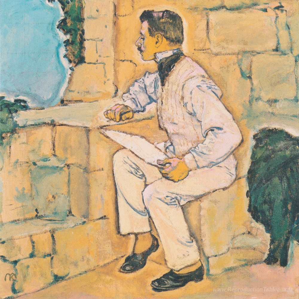 Nous vous proposons une reproduction artisanale sur toile du célèbre tableau 'Autoportrait' de Koloman Moser, provenant du Musée de la Reproduction.