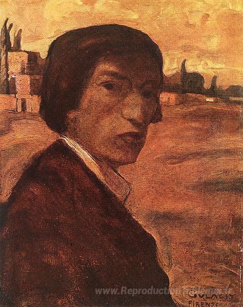 Nous vous proposons une reproduction artisanale sur toile du célèbre tableau 'Autoportrait' de Lajos Gulacsy , provenant du Musée de la Reproduction.