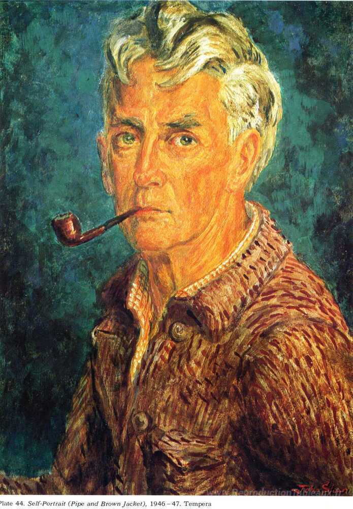 Nous vous proposons une reproduction artisanale sur toile du célèbre tableau 'Autoportrait (pipe et veste marron)' de John French Sloan, provenant du Musée de la Reproduction.