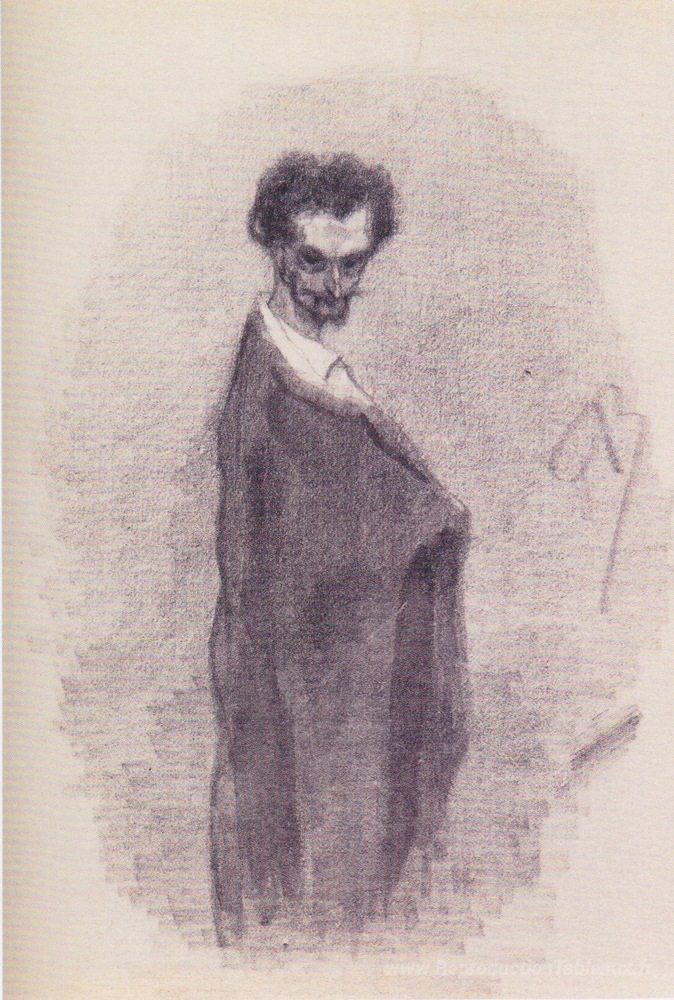 Nous vous proposons une reproduction artisanale sur toile du célèbre tableau 'Autoportrait satanique' de Felicien Rops, provenant du Musée de la Reproduction.
