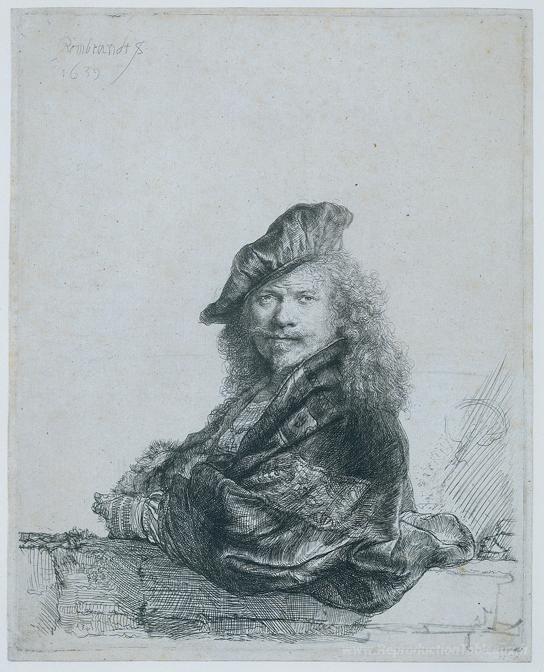 Nous vous proposons une reproduction artisanale sur toile du célèbre tableau 'Autoportrait se pencher sur un seuil de pierre' de Rembrandt, provenant du Musée de la Reproduction.