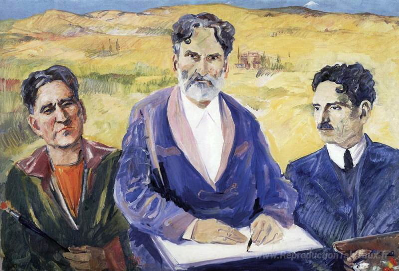 Nous vous proposons une reproduction artisanale sur toile du célèbre tableau 'Autoportrait. Trois âges.' de Martiros Saryan, provenant du Musée de la Reproduction.