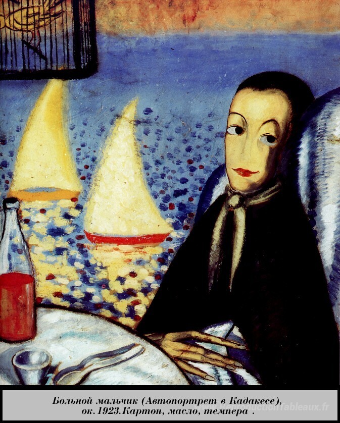 Nous vous proposons une reproduction artisanale sur toile du célèbre tableau 'Garçon malade (autoportrait à cadaqués)' de Salvador Dali, provenant du Musée de la Reproduction.