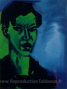 Nous vous proposons une reproduction artisanale sur toile du célèbre tableau 'Grünes Selbstportrait' de Rainer Fetting, provenant du Musée de la Reproduction.