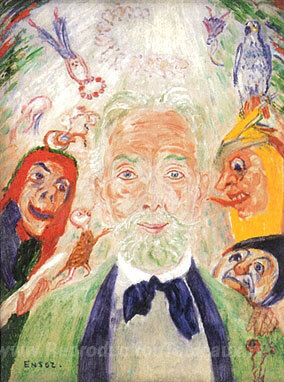 Nous vous proposons une reproduction artisanale sur toile du célèbre tableau 'Moi et mon cercle' de James Ensor, provenant du Musée de la Reproduction.