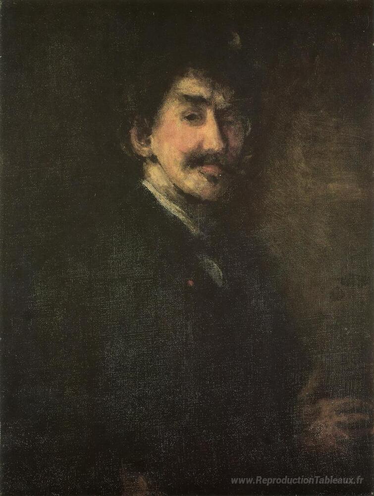 Nous vous proposons une reproduction artisanale sur toile du célèbre tableau 'Or et brun (autoportrait)' de James McNeill Whistler, provenant du Musée de la Reproduction.