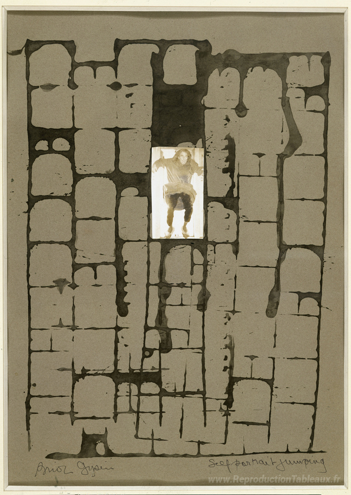Nous vous proposons une reproduction artisanale sur toile du célèbre tableau 'Saut à autoportrait' de Brion Gysin, provenant du Musée de la Reproduction.