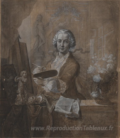 Nous vous proposons une reproduction artisanale sur toile du célèbre tableau 'Selbstbildnis an der standardlei' de Johann Anton de Peters, provenant du Musée de la Reproduction.