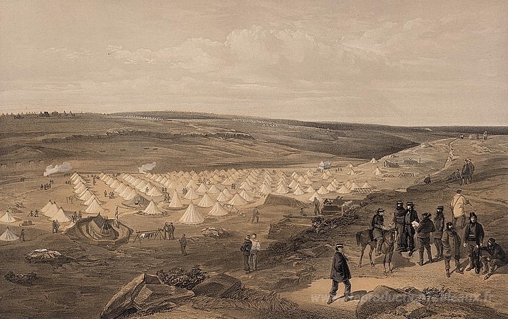 Nous vous proposons une reproduction artisanale sur toile du célèbre tableau 'Camp de la Brigade navale, avant Sebastopol' de William Simpson, provenant du Musée de la Reproduction.