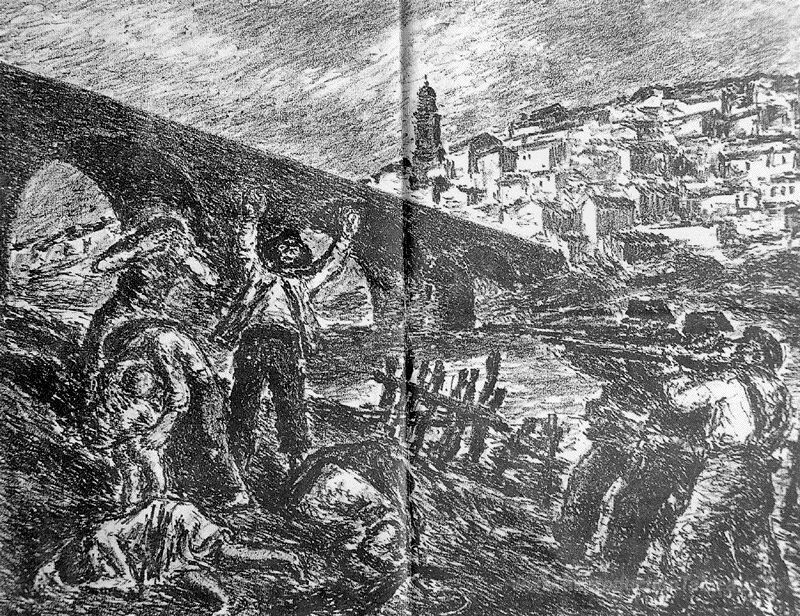 Nous vous proposons une reproduction artisanale sur toile du célèbre tableau 'Scène de guerre' de Arturo Souto, provenant du Musée de la Reproduction.