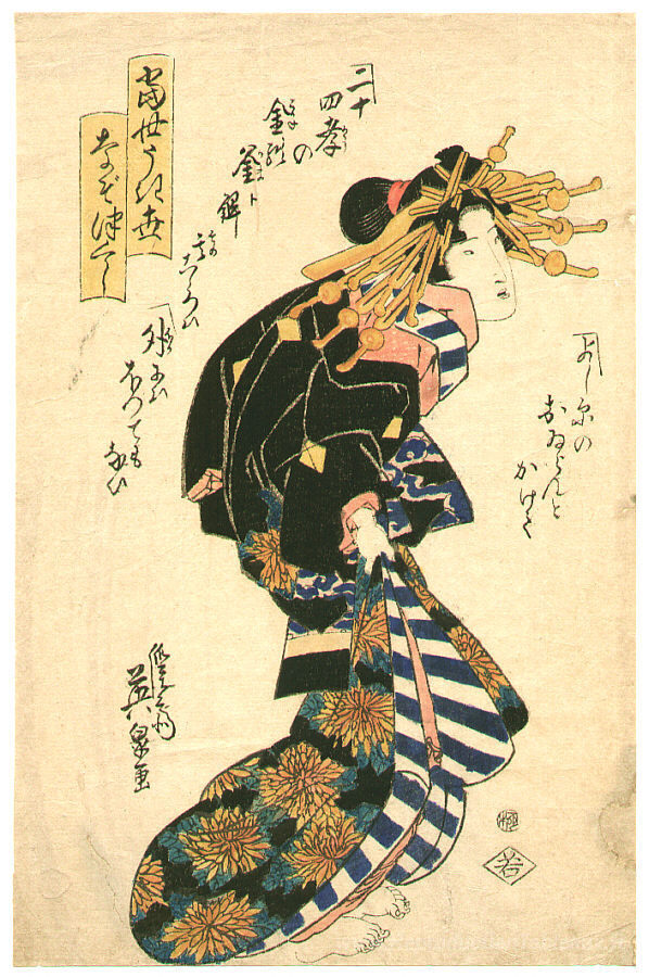 Nous vous proposons une reproduction artisanale sur toile du célèbre tableau 'Courtisane et énigme' de Keisai Eisen, provenant du Musée de la Reproduction.