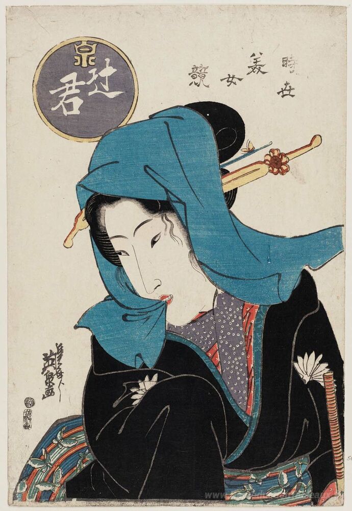 Nous vous proposons une reproduction artisanale sur toile du célèbre tableau 'Streetwalker (Tsujigimi)' de Keisai Eisen, provenant du Musée de la Reproduction.