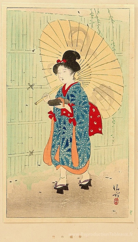 Nous vous proposons une reproduction artisanale sur toile du célèbre tableau 'titre inconnu' de Kiyokata Kaburagi, provenant du Musée de la Reproduction.