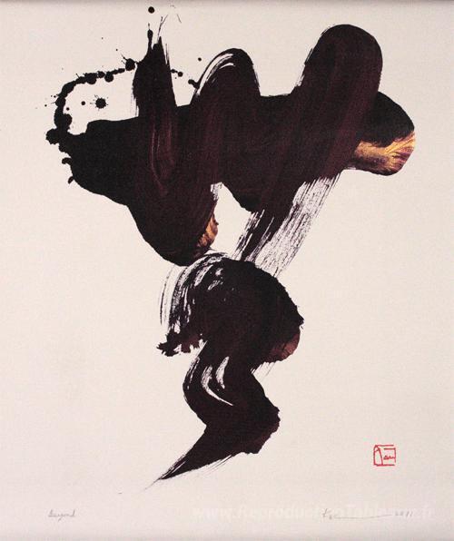 Nous vous proposons une reproduction artisanale sur toile du célèbre tableau 'Au-delà' de Kazuaki Tanahashi, provenant du Musée de la Reproduction.