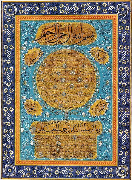 Nous vous proposons une reproduction artisanale sur toile du célèbre tableau 'Hilye' de Hafiz Osman, provenant du Musée de la Reproduction.