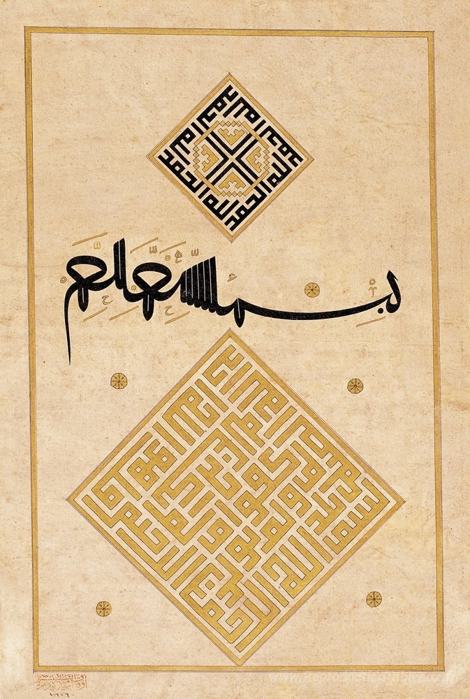 Nous vous proposons une reproduction artisanale sur toile du célèbre tableau 'La partie droite d'un frontispice de deux pages à un manuscrit d' de Ahmed Karahisari, provenant du Musée de la Reproduction.