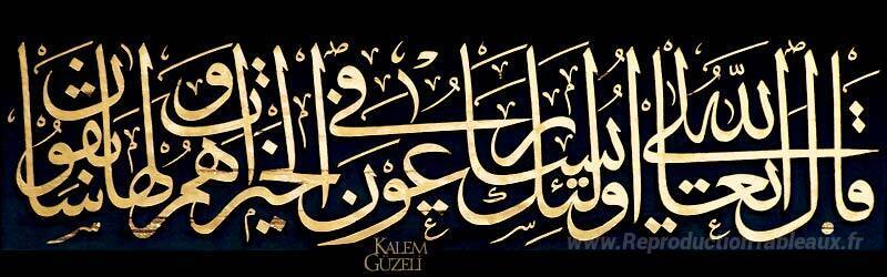 Nous vous proposons une reproduction artisanale sur toile du célèbre tableau 'Levha - Ayet-i Kerime' de Mustafa Rakim, provenant du Musée de la Reproduction.
