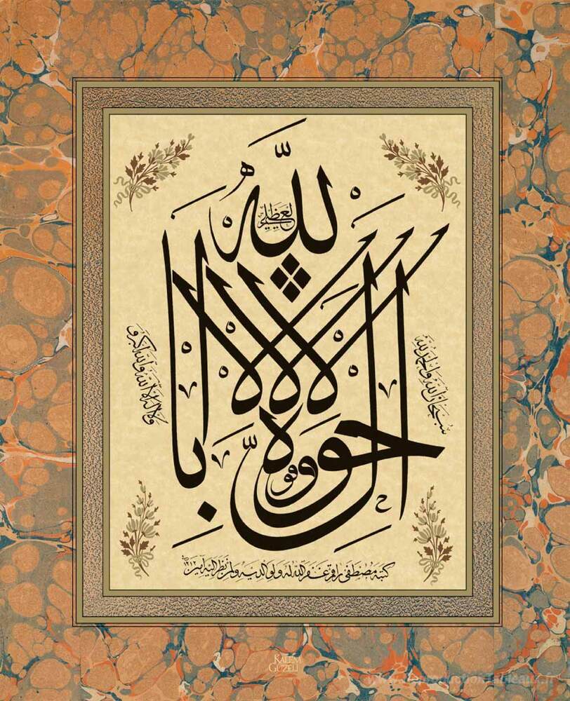 Nous vous proposons une reproduction artisanale sur toile du célèbre tableau 'Levha - Dua' de Mustafa Rakim, provenant du Musée de la Reproduction.
