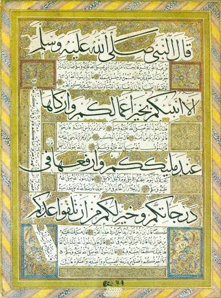 Nous vous proposons une reproduction artisanale sur toile du célèbre tableau 'Levha - Hadis-i Serif' de Sheikh Hamdullah, provenant du Musée de la Reproduction.