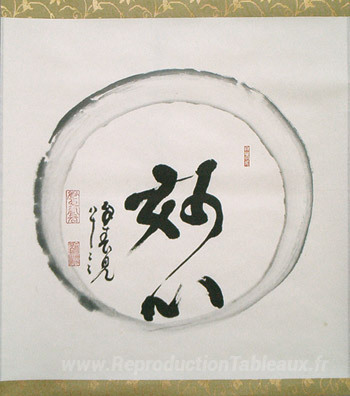 Nous vous proposons une reproduction artisanale sur toile du célèbre tableau 'Mente Enso' de Kasumi Bunsho, provenant du Musée de la Reproduction.