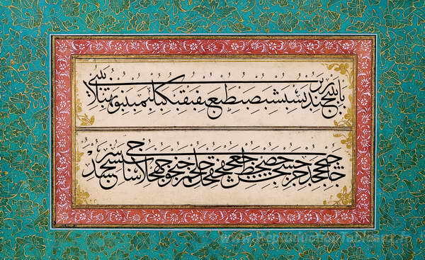 Nous vous proposons une reproduction artisanale sur toile du célèbre tableau 'Muttas?l Müfredat' de Mustafa Rakim, provenant du Musée de la Reproduction.