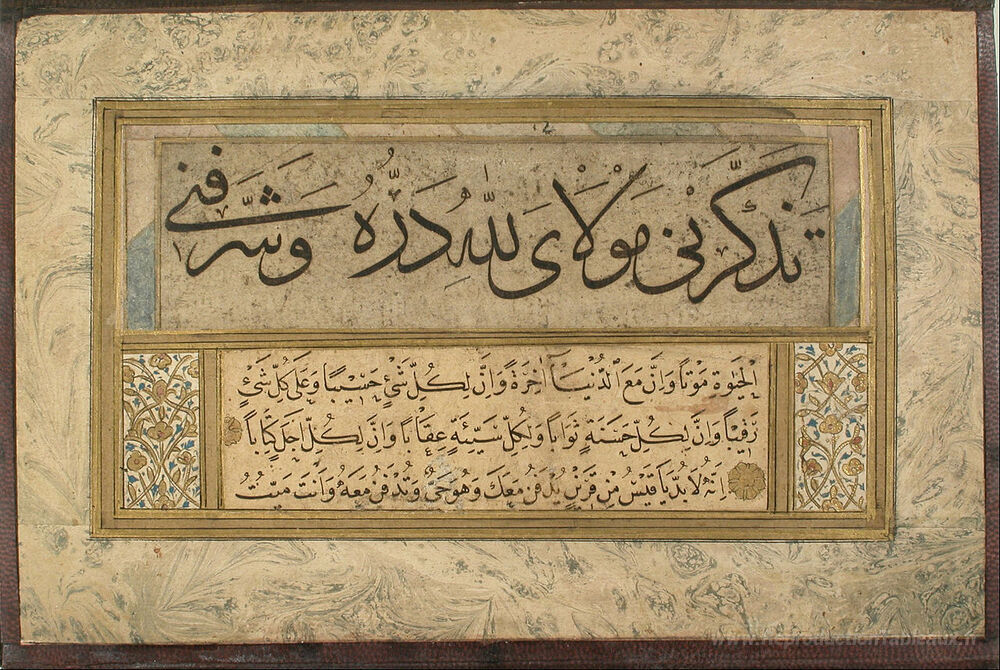 Nous vous proposons une reproduction artisanale sur toile du célèbre tableau 'titre inconnu' de Sheikh Hamdullah, provenant du Musée de la Reproduction.