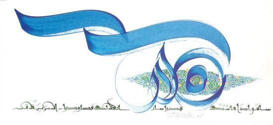 Nous vous proposons une reproduction artisanale sur toile du célèbre tableau 'Voyagez si vous visez certaines valeurs. En parcourant le ciel, ' de Hassan Massoudy, provenant du Musée de la Reproduction.