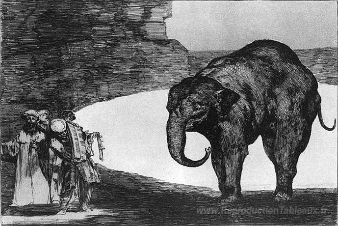 Nous vous proposons une reproduction artisanale sur toile du célèbre tableau 'Autres lois par le peuple ou l'absurdité des bêtes' de Francisco Goya, provenant du Musée de la Reproduction.
