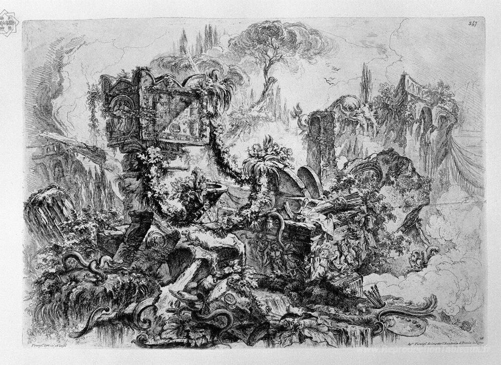 Nous vous proposons une reproduction artisanale sur toile du célèbre tableau 'Caprice Decoration, un groupe de ruines habitées par des serpent' de Giovanni Battista Piranesi, provenant du Musée de la Reproduction.