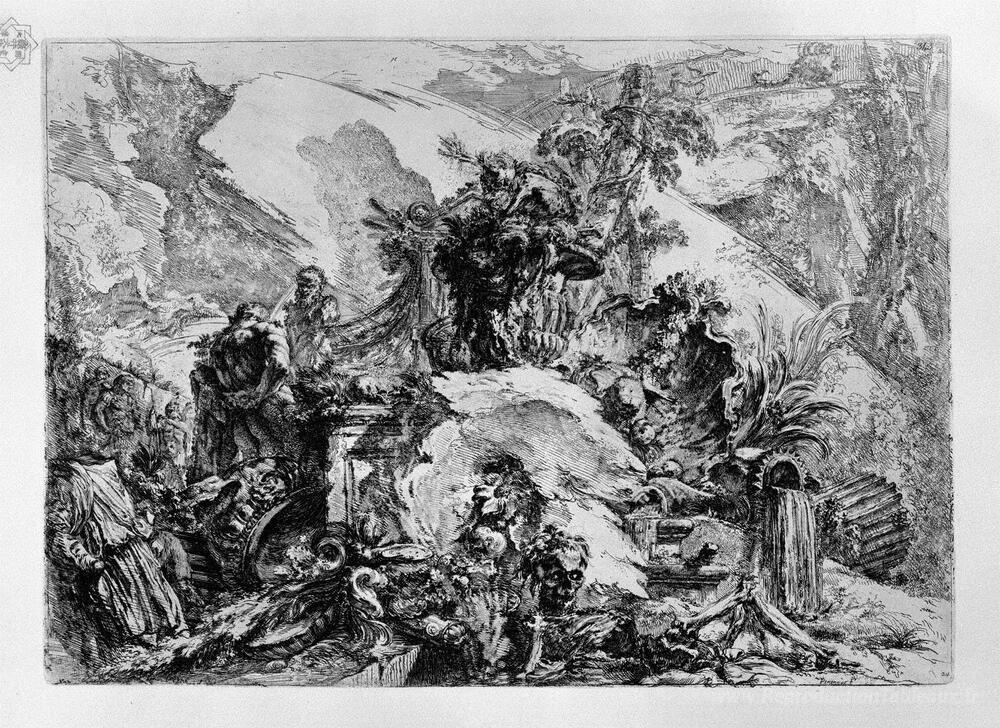Nous vous proposons une reproduction artisanale sur toile du célèbre tableau 'Décoration Caprice: une figure squelettique au centre, parmi les' de Giovanni Battista Piranesi, provenant du Musée de la Reproduction.