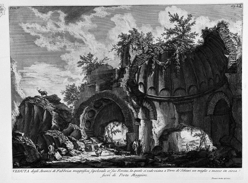 Nous vous proposons une reproduction artisanale sur toile du célèbre tableau 'Les antiquités romaines, t. 2, plaque LX. Une vue de la magnifiq' de Giovanni Battista Piranesi, provenant du Musée de la Reproduction.