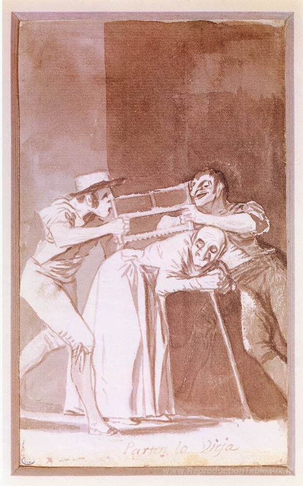 Nous vous proposons une reproduction artisanale sur toile du célèbre tableau 'Partager la vieille femme' de Francisco Goya, provenant du Musée de la Reproduction.