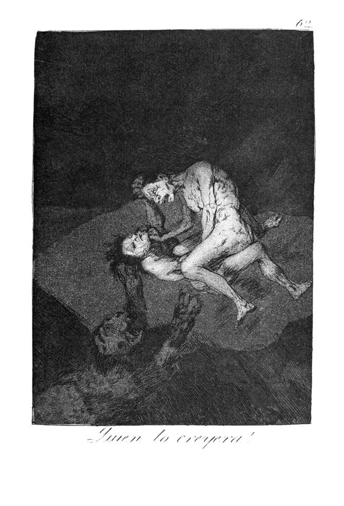 Nous vous proposons une reproduction artisanale sur toile du célèbre tableau 'Qui pourrait le croire!' de Francisco Goya, provenant du Musée de la Reproduction.