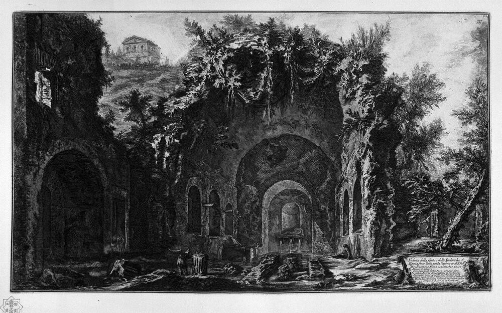 Nous vous proposons une reproduction artisanale sur toile du célèbre tableau 'Vue du temple du camene' de Giovanni Battista Piranesi, provenant du Musée de la Reproduction.