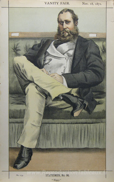 Nous vous proposons une reproduction artisanale sur toile du célèbre tableau 'Caricature de Lionel Dawson Damer M.P.' de James Tissot, provenant du Musée de la Reproduction.