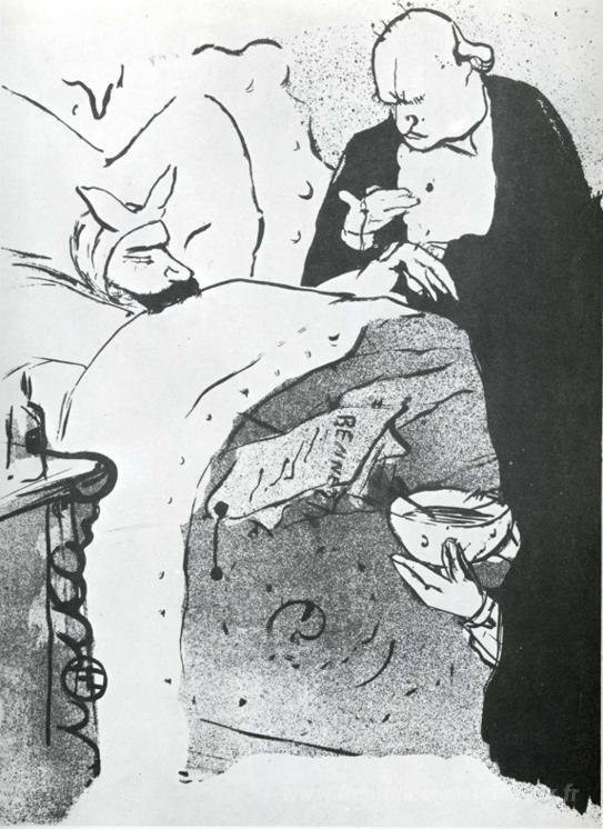 Nous vous proposons une reproduction artisanale sur toile du célèbre tableau 'Carnot Malade ne peut pas malade, une chanson chantée au chat no' de Henri de Toulouse-Lautrec, provenant du Musée de la Reproduction.
