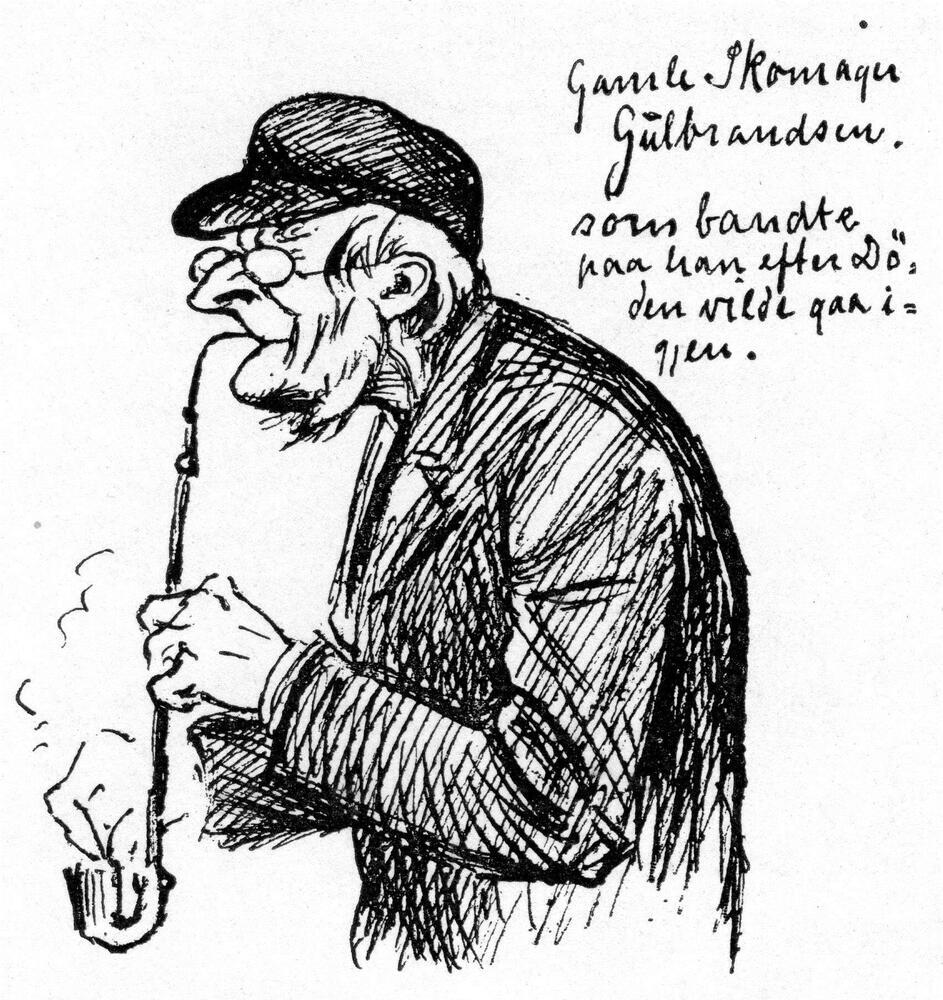 Nous vous proposons une reproduction artisanale sur toile du célèbre tableau 'Jérusamels Skomaker' de Theodor Severin Kittelsen, provenant du Musée de la Reproduction.