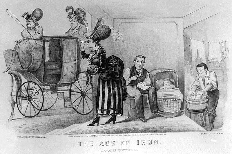 Nous vous proposons une reproduction artisanale sur toile du célèbre tableau 'L'âge du fer. L'homme comme il s'attend à être' de Currier and Ives, provenant du Musée de la Reproduction.