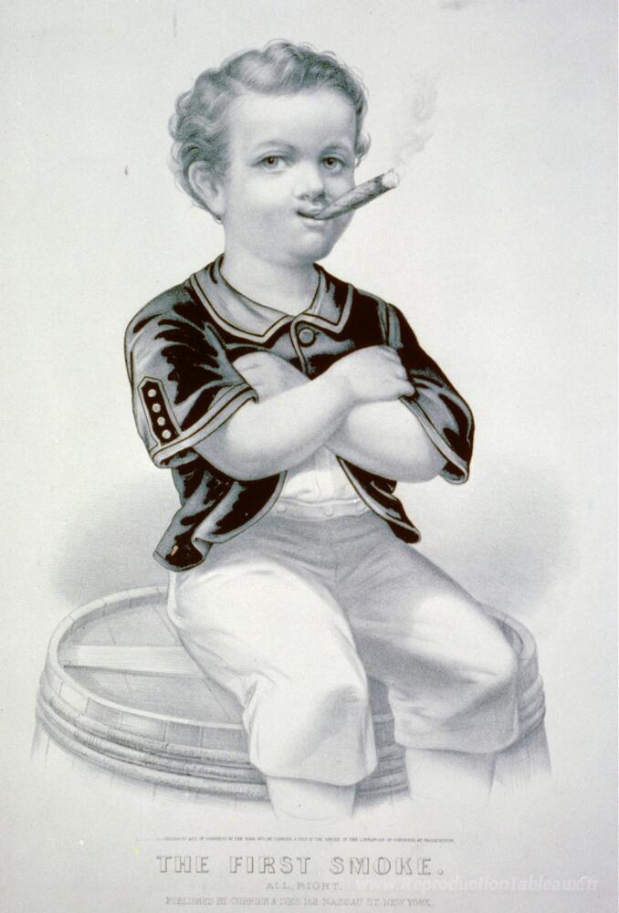 Nous vous proposons une reproduction artisanale sur toile du célèbre tableau 'La première fumée. D'accord' de Currier and Ives, provenant du Musée de la Reproduction.