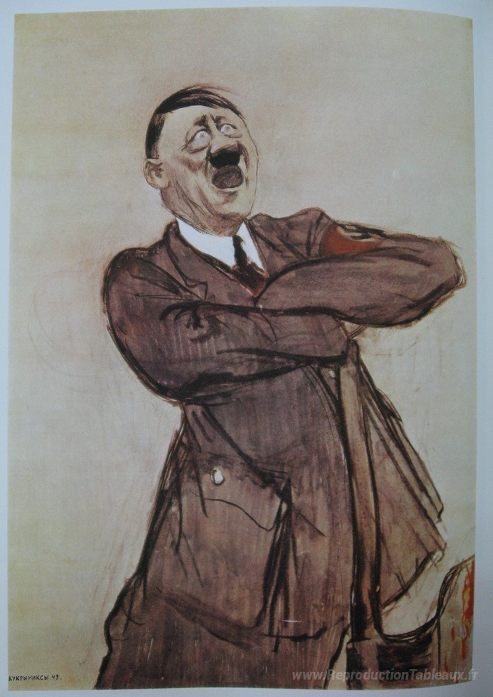 Nous vous proposons une reproduction artisanale sur toile du célèbre tableau 'Sans titre' de Kukryniksy, provenant du Musée de la Reproduction.
