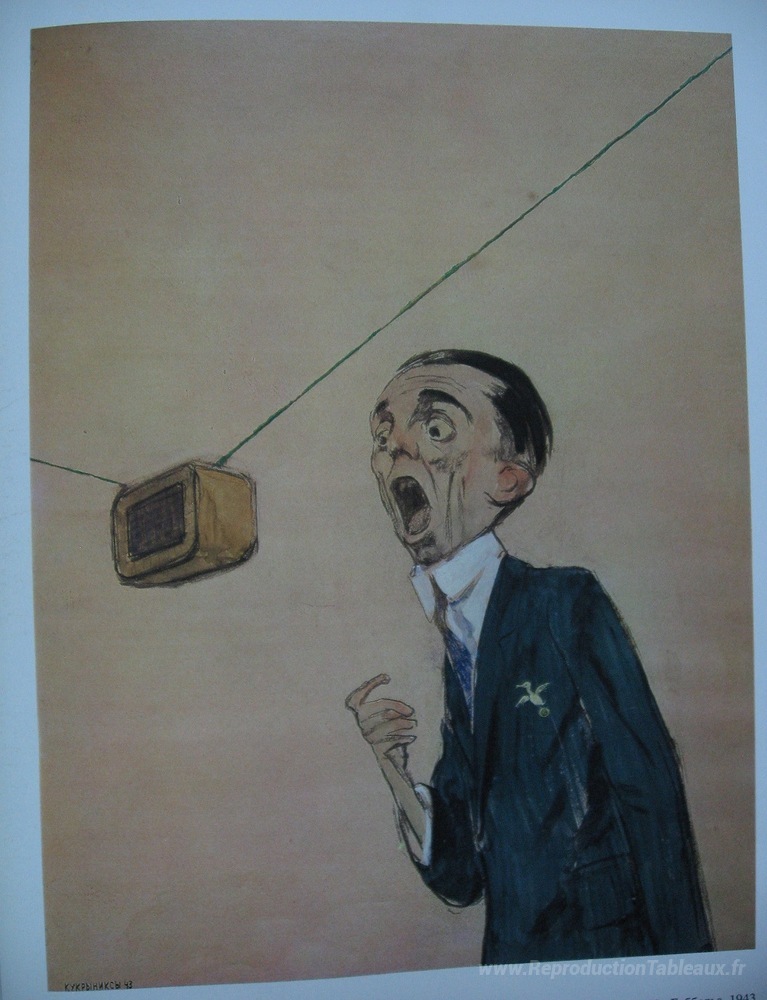 Nous vous proposons une reproduction artisanale sur toile du célèbre tableau 'Sans titre' de Kukryniksy, provenant du Musée de la Reproduction.