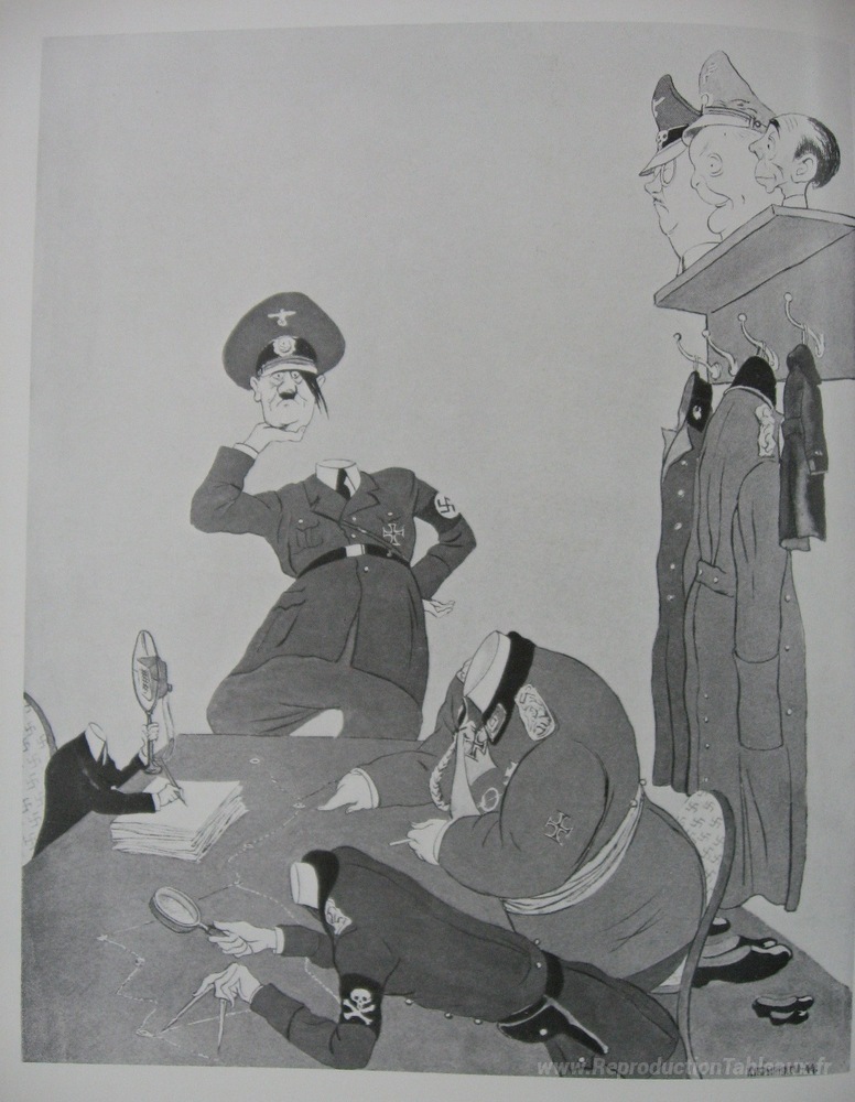 Nous vous proposons une reproduction artisanale sur toile du célèbre tableau 'Sans titre' de Kukryniksy, provenant du Musée de la Reproduction.